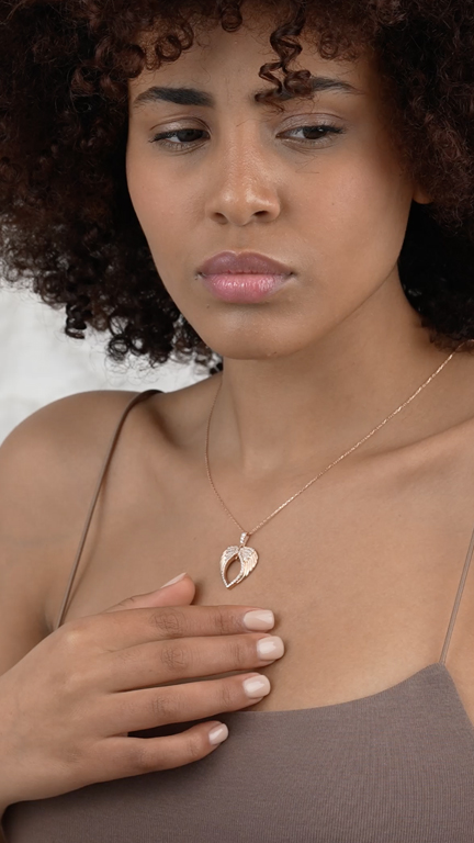 Introducing the Personalized Angel Wings Heart Pendant Silver Necklace ñ a timeless piece of jewelry that embodies love, protection, and affection. This exquisite silver necklace features a heart-shaped pendant with angel wings, meticulously crafted to add a touch of elegance and grace to any ensemble. The addition of sparkling stones enhances the beauty of the pendant, making it a dazzling accessory for women of all ages.