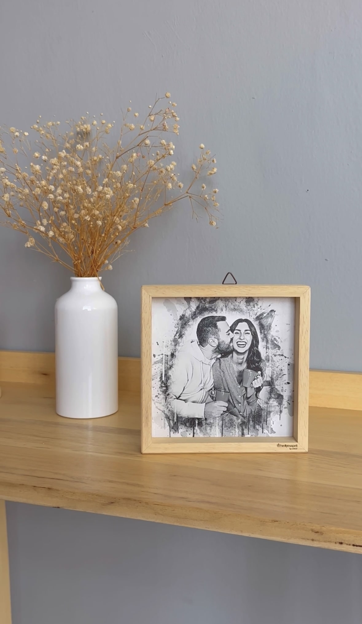 Crafted with attention to detail, the wooden frame adds a warm, natural touch to any home or office space, complementing various decor styles. The charcoal effect brings out the depth and emotion of the photograph, creating a striking visual piece that captures the essence of the moment.