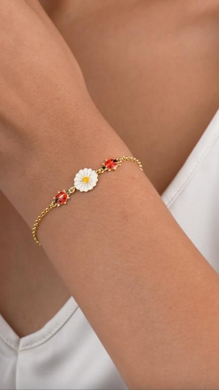 In summary, if you're searching for a gift that's unique, charming, and full of character, look no further than our Gold Plated Daisy Charm Bracelet with Ladybug Accents. It's a gift that will be remembered and valued, perfect for making any special occasion even more memorable.
