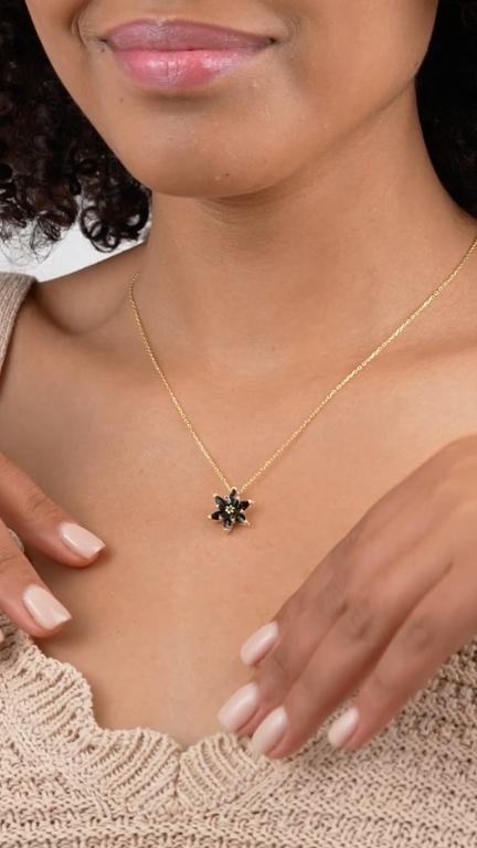 The Black Lotus Gold Plated Necklace is a stunning piece of jewellery that exudes elegance and sophistication. Designed to captivate attention, this necklace features a delicate gold-plated chain and a striking black lotus pendant, making it a timeless accessory for any occasion. Crafted with meticulous attention to detail, the lotus flower pendant symbolises purity, resilience, and beauty. Its gold-plated finish adds a touch of luxury, while the intricate black stones create a bold yet graceful contrast. Whether you're dressing up for a special event or adding a touch of glamour to your everyday outfit, this necklace is a versatile choice that will enhance your style effortlessly. This exquisite necklace makes an ideal gift for the special women in your life. Whether you're celebrating an anniversary, a birthday, or Valentine's Day, the Black Lotus Gold Plated Necklace is a thoughtful and meaningful way to show your love and appreciation. It’s perfect for your wife, girlfriend, or even as a heartfelt gift for a close friend. You can also treat yourself to this timeless piece, because self-love and self-expression deserve to be celebrated too. The necklace's lightweight design ensures comfort, while its adjustable chain allows for a customised fit. It pairs beautifully with both formal and casual attire, making it a versatile addition to any jewellery collection. The Black Lotus Gold Plated Necklace is not just an accessory – it’s a statement of elegance and individuality. Whether you’re looking for a unique gift or a stylish addition to your personal collection, this necklace ticks all the boxes. Its combination of classic design and modern appeal ensures it will be cherished for years to come. Make your loved one feel special or add a touch of sophistication to your own look with this beautiful piece of jewellery.