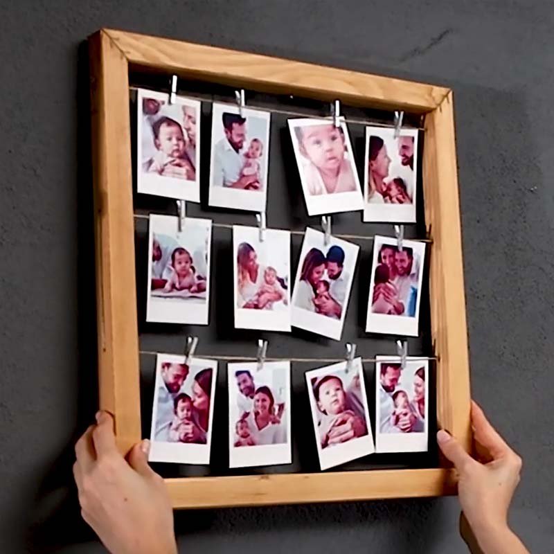 The frame is made from high-quality wood, giving it a rustic and elegant appearance that blends seamlessly with any home decor. The included mini wooden pegs allow you to easily attach and rearrange your photos, giving you the flexibility to update your display as new memories are made. The design ensures that each photo is highlighted, creating a visually stunning collage of moments that matter most.