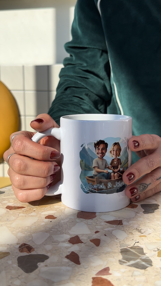 Looking for a unique and romantic gift that will make your loved one smile? The Personalised Rowboat Cartoon Couple Mug is the perfect choice for expressing love and humour in one thoughtful present. This charming mug features a delightful cartoon-style illustration of a couple rowing a boat, customised with the names of your choice. Whether it’s for your wife, husband, girlfriend, or boyfriend, this mug is designed to bring joy and laughter to your special someone. The high-quality ceramic mug is both practical and meaningful, making it an ideal gift for various occasions such as anniversaries, birthdays, Valentine's Day, or simply to say 'I love you' just because. The personalised touch adds a layer of thoughtfulness, ensuring your gift stands out and becomes a cherished keepsake. The vibrant design is printed with precision, ensuring durability and a long-lasting finish that won’t fade over time, even with regular use. This mug is perfect for couples who appreciate a touch of humour and romance in their daily lives. Imagine your partner enjoying their morning coffee or tea from a mug that not only serves a functional purpose but also reminds them of your love and the special moments you’ve shared. The whimsical rowboat design symbolises togetherness and partnership, making it a meaningful gift for those who value their bond. The Personalised Rowboat Cartoon Couple Mug is also a great choice for friends or family members who love quirky and personalised gifts. It’s suitable for adults and teens alike, and its witty design makes it a hit across different age groups. Whether you’re celebrating a milestone or simply want to brighten someone’s day, this mug is a versatile and heartwarming option. Order yours today to create a one-of-a-kind gift that captures the essence of love and laughter. With its unique design, personalisation options, and universal appeal, this mug is sure to become a favourite in anyone’s collection.