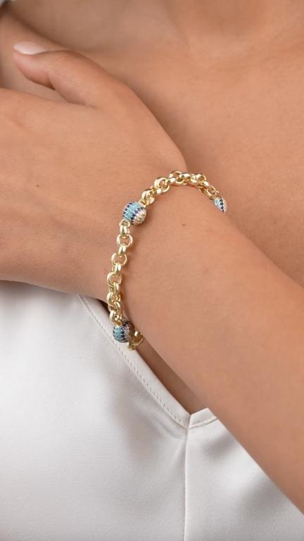 Introducing the Gold Plated Evil Eye Bracelet, a stunning piece of jewelry that combines style with symbolism. This exquisite bracelet is more than just an accessory; it's a meaningful gift that serves as a protective talisman, believed to ward off negative energies and bring good luck to its wearer. Perfect for women of all ages, from teens to adults over 45, it's a versatile present for your mom, partner, friend, or even a special treat for yourself. Crafted with care, the bracelet features a series of delicately beaded evil eye charms, each meticulously placed along a lustrous gold plated dodge chain. The evil eye motif, a symbol with ancient roots, is renowned for its protective properties and is a thoughtful addition to any jewelry collection. The vibrant blue and white colors of the beads stand out against the warm gold tones, creating a striking contrast that is both eye-catching and meaningful. The bracelet's adjustable design ensures a comfortable fit for a variety of wrist sizes, making it an inclusive gift option. Whether it's for a birthday celebration, a 'just because' gesture, or as an elegant accessory for everyday wear, this bracelet is sure to be cherished. It's an ideal choice for those who appreciate jewelry with a deeper significance, and its stylish appearance makes it a great match for both casual and formal outfits. Not only does this Gold Plated Evil Eye Bracelet serve as a beautiful piece of jewelry, but it also offers the wearer a sense of comfort and confidence, knowing they are carrying a symbol of protection with them. It's a thoughtful and fashionable gift that speaks volumes, showing your care and consideration for the recipient's well-being and style. In summary, the Gold Plated Evil Eye Bracelet is a versatile, elegant, and protective piece of jewelry, making it a perfect gift for various occasions. Its timeless design and symbolic value make it a standout addition to any jewelry box. Gift this bracelet to show love and care, and to add a touch of elegance and protection to someone special's life.