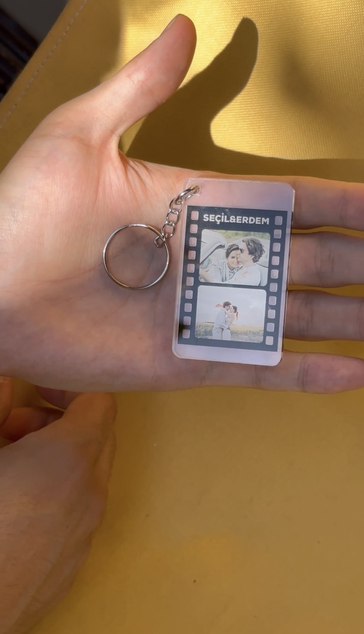 This keychain features a filmstrip design that adds a touch of Hollywood charm to your everyday accessories. It's a creative way to display favorite photos, whether it's a snapshot of a romantic moment, a family picture, or a fun image with friends. The keychain can be customized with names, dates, or a short message, making it a truly personal and one-of-a-kind gift.