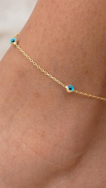 Introducing the Chic Gold Plated Evil Eye Anklet for Her ñ a symbol of protection and a fashionable statement piece rolled into one. This delicate anklet is more than just an accessory; it's a meaningful gift that carries with it an aura of mystique and a wish for good fortune. Whether you're shopping for a partner, a dear friend, or treating yourself, this anklet is a versatile choice for adults and teens alike. Crafted with precision, the anklet features a dainty chain with evenly spaced evil eye charms, each one plated in shimmering gold and highlighted with a touch of striking blue. The evil eye is a beloved symbol in many cultures, believed to ward off negativity and bring good luck to the wearer. This makes our anklet not only a piece of jewelry but a talisman that can accompany your loved one on their daily journey. The anklet's adjustable design ensures a comfortable fit for all sizes, making it a worry-free gift. Its simplicity allows it to be worn with a variety of outfits, from casual to formal, making it a versatile addition to any wardrobe. It's a thoughtful present for birthdays, but its charm doesn't rely on a special occasion; it's a splendid 'just because' gesture to show someone you care. Moreover, this anklet serves as a subtle yet stylish complement to any ensemble. It can be layered with other anklets for a boho-chic look or worn alone for a touch of understated elegance. The gold plating offers the look of luxury without the hefty price tag, ensuring that this gift is as affordable as it is chic. In a world where fashion and personal expression go hand in hand, the Gold Plated Evil Eye Anklet stands out as a gift that not only enhances the wearer's style but also offers a personal touch of protection and good wishes. It's a unique and thoughtful way to show your affection, celebrate a milestone, or simply brighten someone's day. Gift this anklet and give the gift of style and positive energy.