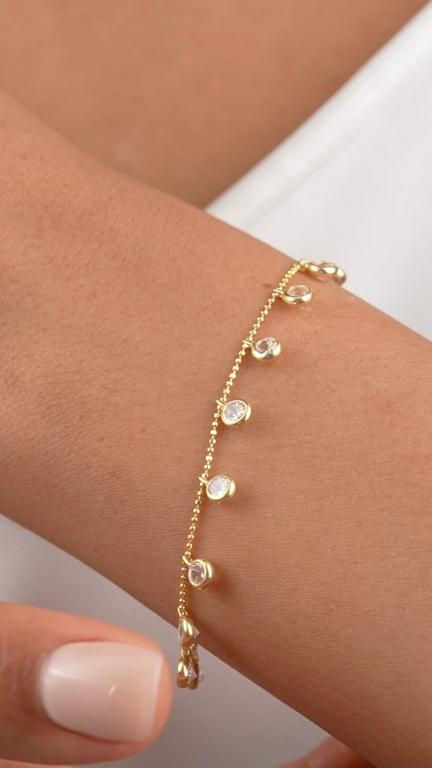 Crafted from high-quality materials, the bracelet features a delicate Italian chain adorned with sparkling zirconia stones that catch the light with every movement. The gold-tone finish adds a warm, luxurious glow that complements any skin tone and pairs beautifully with other jewelry pieces.