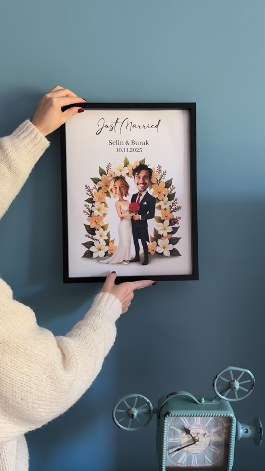 Looking for a unique and thoughtful gift to celebrate a wedding, anniversary, or Valentine's Day? The Just Married Personalized Caricature Frame is the perfect choice to capture love and laughter in one delightful keepsake. This customized caricature frame is a witty and heartwarming gift designed to bring a smile to the faces of your loved ones. This beautifully crafted frame features a caricature design of the happy couple, complete with their names and a special date, making it a truly one-of-a-kind piece. The floral accents and elegant typography add a touch of charm, while the high-quality materials ensure durability and a polished finish. Whether displayed in the living room, bedroom, or home office, this frame is sure to become a cherished memory of their special day. Ideal for both men and women, this personalized gift is perfect for newlyweds, long-time partners, or even as a fun surprise for a teen couple. It's a versatile choice for a variety of occasions, including weddings, anniversaries, Valentine's Day, or as a romantic gesture "just because." The witty caricature design makes it an interesting and entertaining addition to any home décor, while the personalization ensures it holds sentimental value. This caricature frame also makes a great conversation starter, adding a touch of humor and personality to any space. It’s not just a gift; it’s a keepsake that celebrates love, joy, and togetherness. Whether you're gifting it to your partner or a couple you hold dear, the Just Married Personalized Caricature Frame is a meaningful and memorable way to commemorate their journey together. Order this charming frame today and give a gift that combines laughter, love, and lasting memories. With its blend of personalization, humor, and elegance, this frame is guaranteed to leave a lasting impression.