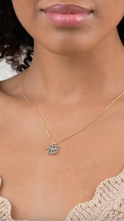 In addition to its aesthetic appeal, the Mystic Topaz Floral Pendant Necklace is designed for comfort and durability. The adjustable chain allows for a custom fit, ensuring it rests perfectly on the collarbone. It's a piece that's not only visually appealing but also practical for daily wear.