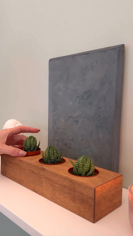 Crafted from high-quality wood, this planter features three individual slots, perfect for housing small plants or succulents. Its compact size makes it suitable for desks, windowsills, or any small space in need of a decorative lift. The wooden surface is expertly engraved with a personalized message, name, or date, making it a truly special and one-of-a-kind gift.