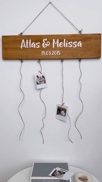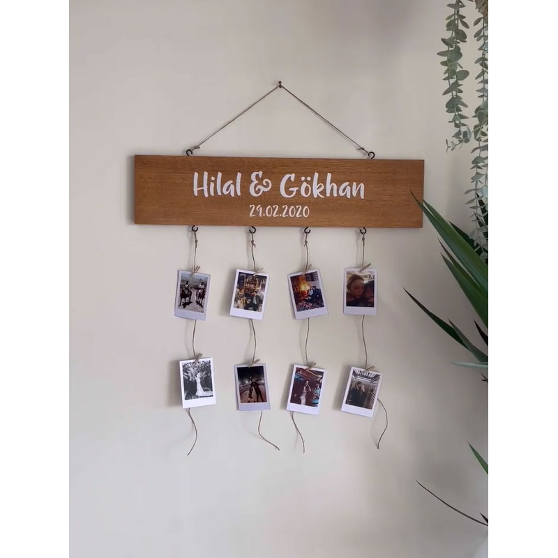 Crafted with attention to detail, this banner allows you to hang a collection of your favorite pictures, creating a visual narrative of love, friendship, and unforgettable experiences. The wooden beam adds a rustic charm and serves as a sturdy support for your memories, personalized with names, dates, or a special message that holds meaning to you and your loved ones.