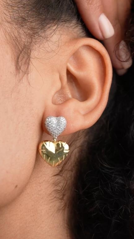 The heart motif is universally recognized as a symbol of love and affection, making these earrings a thoughtful and sentimental choice for 'just because' moments. In the realm of jewelry and accessories, the blend of precious metals in a heart shape is a trend that never fades, ensuring that this gift will be cherished for years to come.