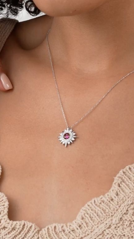 Introducing the Pink Zircon Sunburst Silver Necklace, a stunning piece of jewelry that effortlessly combines elegance with a touch of vibrant color. This exquisite necklace is designed to captivate and charm, making it an ideal gift for the special woman in your life, whether she's your partner, a treasured adult family member, or a teen embarking on her journey into the world of fine accessories. Crafted with precision, the necklace features a radiant sunburst pendant adorned with sparkling zircon stones that catch the light from every angle. At its center, a bold pink zircon stone adds a pop of color that's both sophisticated and playful. The silver chain is delicate yet durable, ensuring that this piece can be worn every day or saved for special occasions. This necklace is more than just an accessory; it's a symbol of love and appreciation. It's perfect for celebrating milestones like anniversaries and birthdays, or as a heartfelt gesture on Valentine's Day. The timeless design ensures that it will be cherished for years to come, making it a thoughtful and lasting gift. The versatility of the Pink Zircon Sunburst Silver Necklace makes it suitable for a wide range of personal styles and ages. It's a gift that resonates with women over 45 who appreciate classic elegance, as well as with younger adults and teens who are drawn to its modern, chic appeal. When you choose this necklace as a gift, you're not just giving a piece of jewelry; you're giving a memory. It's an invitation to celebrate the special moments, big and small, that make life beautiful. Each time it's worn, it will remind her of your thoughtfulness and the special bond you share. So, whether you're looking for a gift to express your love, to commemorate a special occasion, or simply to bring a smile to her face, the Pink Zircon Sunburst Silver Necklace is a choice that will be remembered and treasured.
