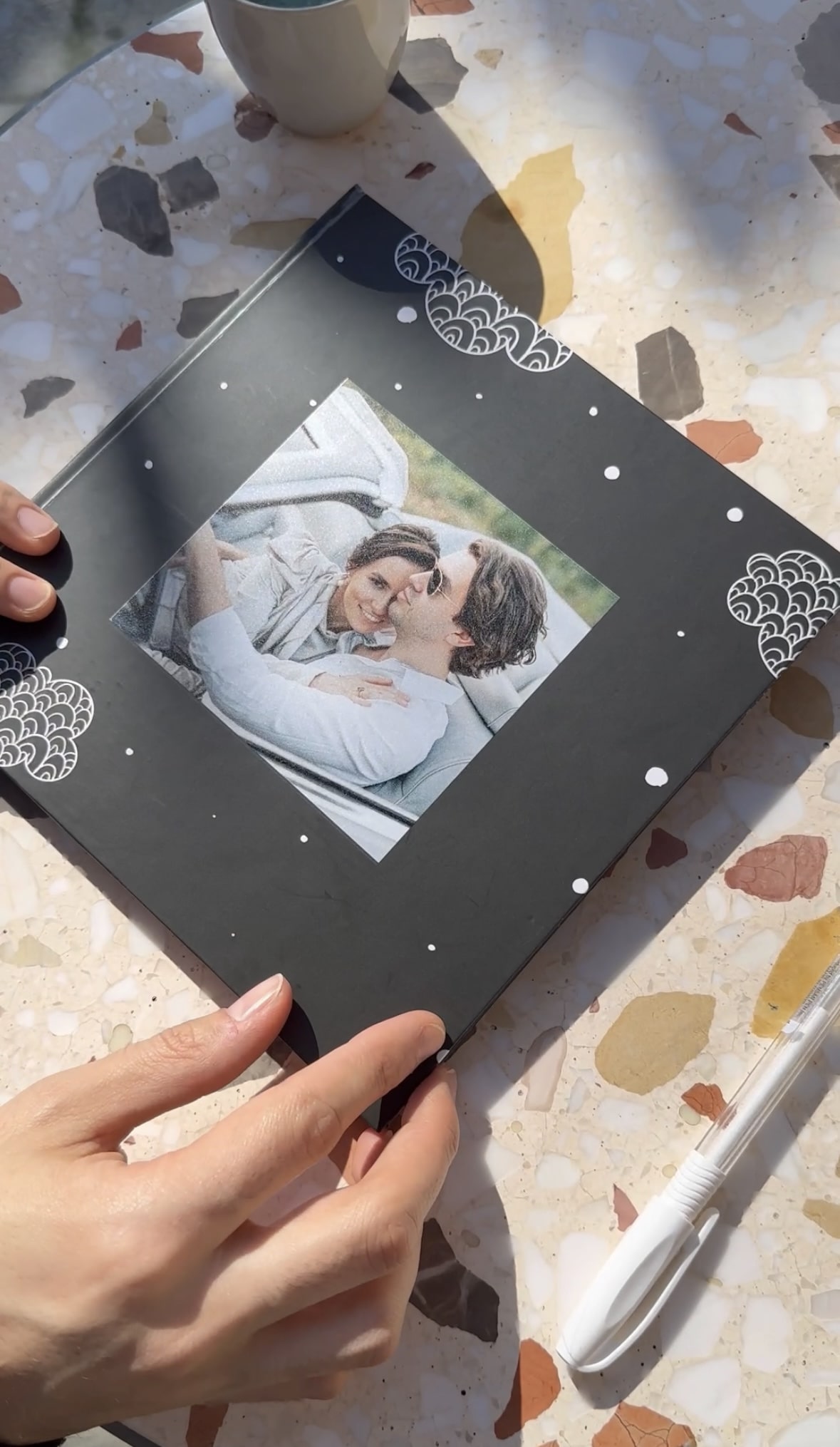 The album's design is not only romantic but also practical. It is crafted to securely hold your photos, protecting them from wear and tear. Its stylish appearance makes it a beautiful display piece in your home, serving as a constant reminder of the love you share.